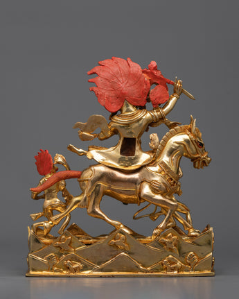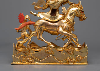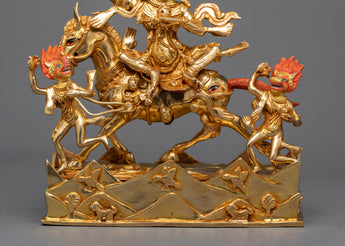 Paldan Lhamo, one of Tibetan Buddhism's most respected protectress goddesses, is noted for her terrifying and formidable appearance. She represents the strong devotion to protect the Dharma as the female guardian of Lhasa's famed Jokhang Temple. Her image is frequently invoked for courage in conquering spiritual and material problems, and she is particularly revered as a protector against evil and a supporter of just causes. Her ferocious appearance in this statue is not only a tribute to her protective strength, but also an encouragement for spiritual resilience and unflinching perseverance.