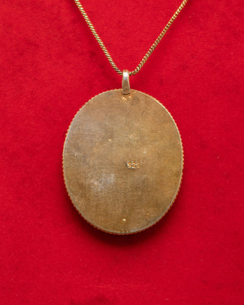 A Buddhist locket is a piece of jewelry designed to hold a small prayer, mantra, or image related to Buddhist practice. The locket may feature a design or image of a Buddhist deity, such as the Buddha, or a representation of a sacred symbol, like the lotus flower. It is typically worn as a talisman to remind the wearer of their spiritual path and to offer protection. Some Buddhist lockets are also used as a form of religious devotion and are frequently given as gifts to friends and family members to provide them with spiritual support and blessings.