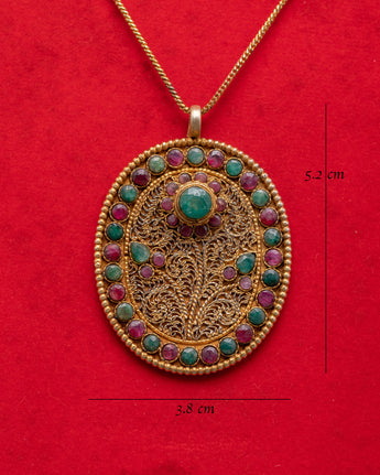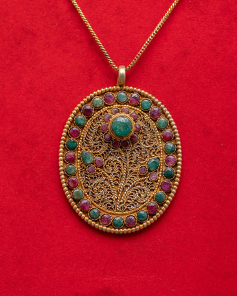 Panna Stone Locket for Accessory | Gold Plated Silver Pendant with Ruby