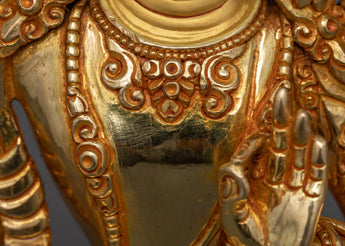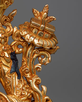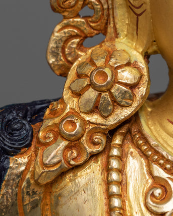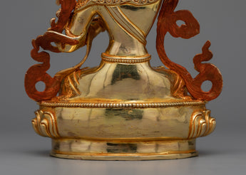 The Manjushree statue is a light of knowledge and clarity with its exquisite detailing and vivid hues. It's more than just a decorative item; it manifests Manjushree's teachings and wisdom. The choice of gold in the statue not only enhances its visual magnificence but also signifies the priceless character of wisdom and enlightenment in Buddhist philosophy.