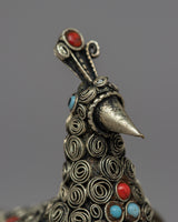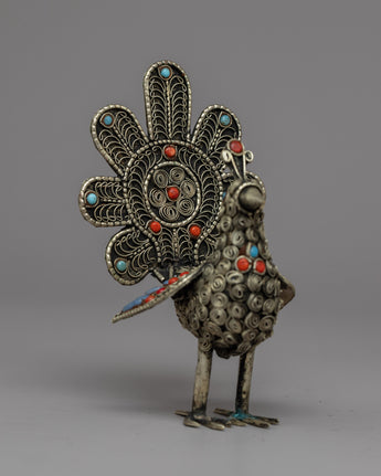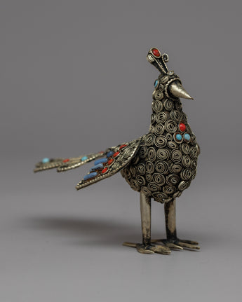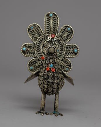 Introducing our magnificent Peacock Couple Statue, a graceful and artistic work of art. This exceptional sculpture has a copper body that has been painstakingly handcrafted, and it is embellished with exquisite silver plating, giving it a lustrous finish that gleams with style.