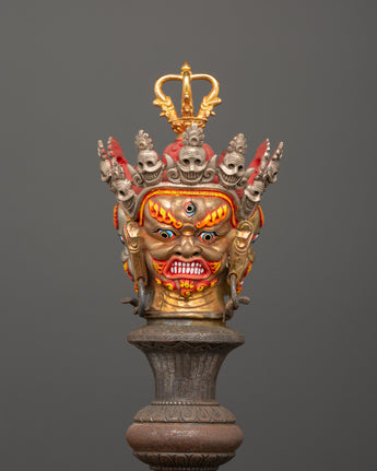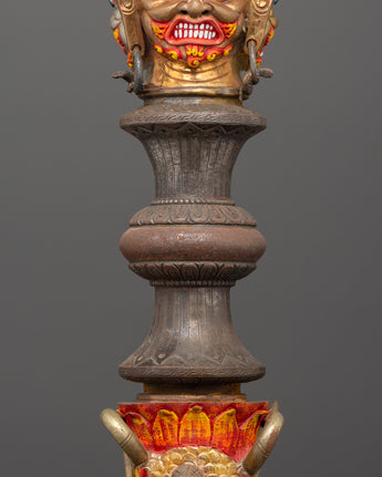 Phurba Sacred Ritual Item with Wrathful Head and Three-Faced Deity Head