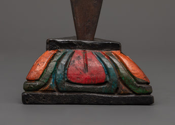 Phurba with Elephant Head is a sacred ritual dagger rooted in Tibetan Tantric culture. This handcrafted artwork, measuring 22cm in height, represents the elephant's strength, intellect, and grounded energy—an important symbol in Buddhist and Hindu spiritual pathways. The Phurba, used in Vajrayana rituals, is a potent spiritual tool for cutting through negative energy and creating sacred space. The "Phurba with Elephant Head" serves as a meditation aid and an altar piece, combining symbolic depth with ritual usefulness.