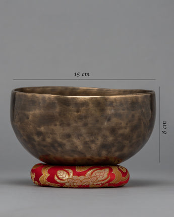 The Plain Singing Bowl is a hand-hammered work of art that exudes simplicity and elegance. It has a sleek and minimalist design, with a smooth and unadorned surface that is free from any patterns or designs. The bowl has been crafted by skilled artisans using traditional techniques, which involve hammering the metal by hand to create its unique shape and structure. The result is a beautiful bowl with a smooth and even surface resonant and melodious tone, perfect for meditation, relaxation, and healing practices.