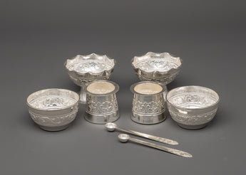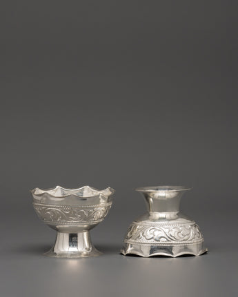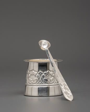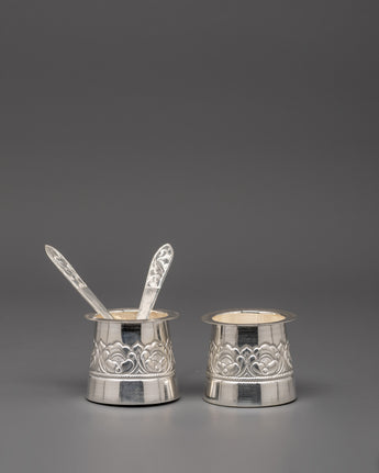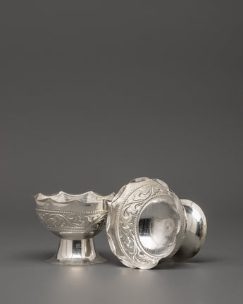 Pure Silver Pooja Set with Offering Bowls, Glasses & Spoons | Ritual Set for Puja, Altar & Meditation