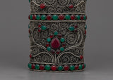 Introducing our Buddhist Portable Snuff Bottle, a symbol of how art and spirituality can coexist. This bottle, which has a copper body and exquisite silver plating, is a work of art that goes beyond beauty.