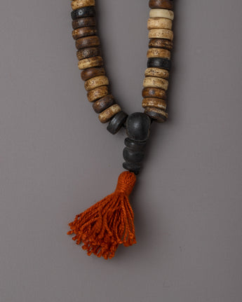 The Prayer Beads Buddhist Mala is a gorgeously produced handicraft to improve meditation and prayers. It is made from ethically sourced bone. Every bead has been meticulously refined to provide a natural, smooth texture that not only gives your practice a physical touch but also has profound symbolic reverberation. The Buddhist symbol for impermanence and the cycle of life is the bone. It serves as a reminder to practitioners of the passing of life and the significance of mindfulness in everyday life.