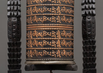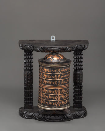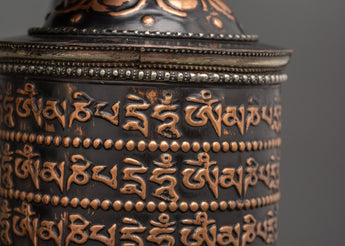 Prayer Wheel with Tibetan Mantras Carved | Meditation, Altar & Rituals Item