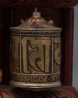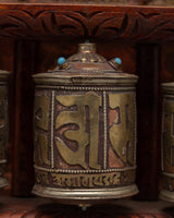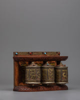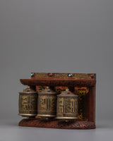 The Buddhist Prayer Wheels Tibet are a great ornamental item as well as a practical spiritual tool for collectors, art enthusiasts, and spiritual practitioners. These three in one prayer wheels, when placed in a meditation area, on a holy altar, or as a classy accent piece in any environment, encourage introspection and respect. Its appreciated addition to any collection or religious setting is enhanced by the blend of brass and copper, while the wooden mounting provides a touch of authentic elegance. This item is more than just a pretty decoration; it's a significant relic that represents excellent craftsmanship and profound spiritual principles.