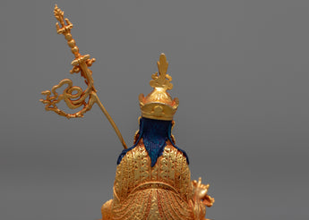 This statue is adorned with enlightenment symbols and serves as a treasured reminder of Guru Rinpoche's limitless compassion and wisdom. Whether placed on personal altars or in meditation places, it fosters a peaceful environment suited to spiritual practice and inward reflection. Each prayer made before this holy depiction is thought to invoke blessings and guidance on the path to enlightenment, cultivating a strong bond with Guru Rinpoche's transformational force.