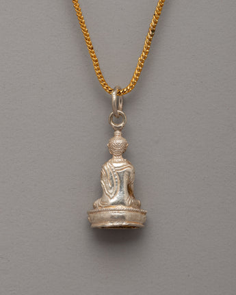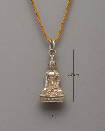 The Buddhist symbolism of Shakyamuni Buddha sitting in the Bhumisparsha Mudra, or "Earth Touching Gesture," which represents the moment of enlightenment, is reflected in the design of the locket. The intricate workmanship links the wearer to the knowledge and compassion taught by Buddha, capturing the spiritual value of this stance. This Buddha locket encourages inner serenity and spiritual development and makes a thoughtful gift or personal amulet.