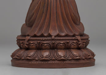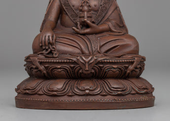 This Precious Zhabdrung Rinpoche Statue is beautifully designed from oxidized copper, giving it a dignified, ancient aspect that heightens its spiritual power. With dimensions of 10 cm in height and 8.5 cm in breadth, and a weight of 0.39 kg, it is ideal for personal altars or meditation places. The oxidized finish emphasizes the intricate craftsmanship and symbolizes the skill that went into crafting this sacred piece, making it not only a collectible but also a meaningful object of worship.