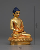 The statue, which weighs 0.29kg, has a noticeable and inviting presence. The meticulous gold plating over copper embodies Amitabha's purity and infinite compassion, making this statue more than just a visual delight but also a beacon of peaceful energy in your home or office.