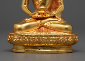 The divine presence of our Precision-Crafted Amitabha Buddha Statue will elevate your space. This machine-made marvel, cast in copper and adorned with 24k gold plating, measures 10.5cm in height and 7cm in width. Its size makes it ideal for incorporating spiritual elegance into any setting.