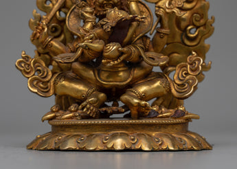 Accept the spiritual energy of the Mahakala Statue, allowing his presence to protect your spiritual practice and assist you through life's trials. As you converse with this strong deity, may you feel encompassed in his protective embrace and find strength in his unwavering commitment to the well-being of all creatures.