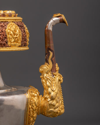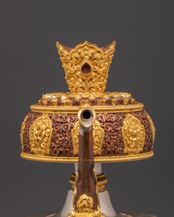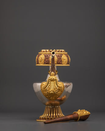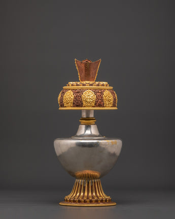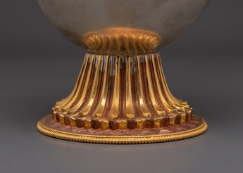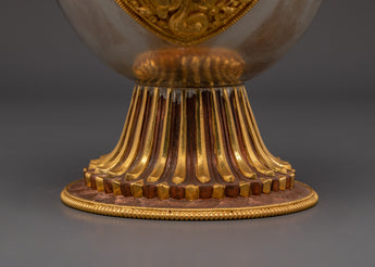 The flawless silver finish, paired with gold-plated copper, gives this ceremonial bowl a divine aspect that matches its sacred purpose. This Bhumba set is a vital instrument for spiritual growth and is ideal for practitioners seeking to enhance their rituals. Whether set on a Tibetan altar or used for water offerings in temple rituals, it gives a connection to old Buddhist traditions and practices, allowing you to honor your spiritual journey.