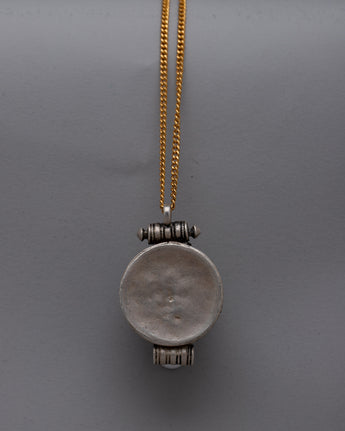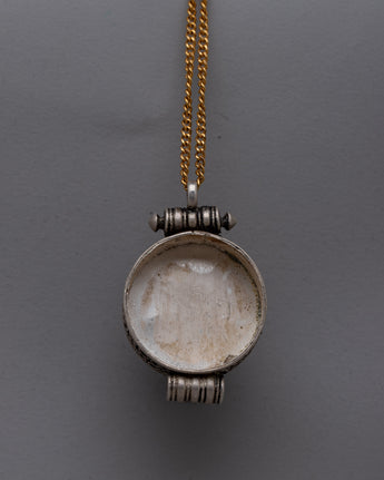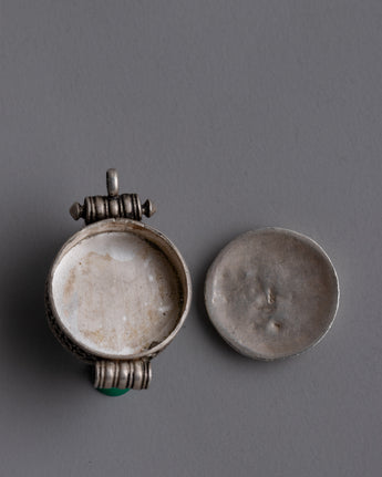 Introducing the Pure Silver Locket Gahu, an artisanal masterpiece precisely crafted from pure silver. This gorgeous locket has an original gemstone delicately inlaid on its surface, lending a touch of natural beauty and sophistication.