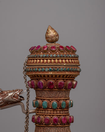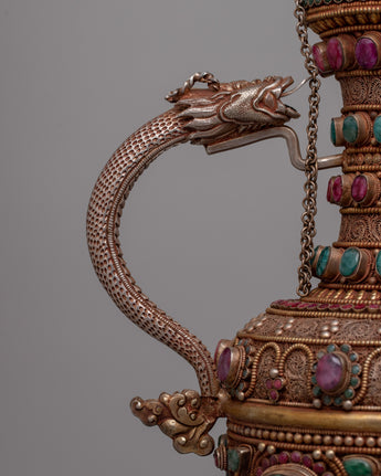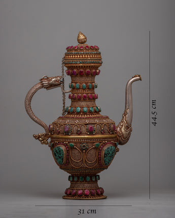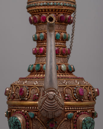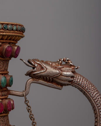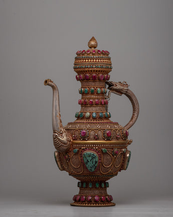 Discover an incredible piece of art that will take your collection to new heights: the Tibetan Pure Silver Tea Pot. This is more than just a teapot; it is a work of exceptional craftsmanship and cultural richness, deserving of appreciation and reverence.