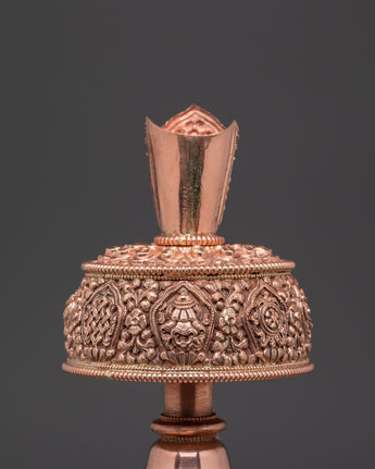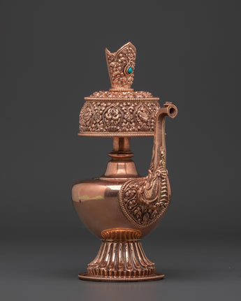 Traditionally filled with consecrated water, Bhumba vases are used by lamas and monks to bless practitioners, clear negative energy, and consecrate sacred spaces. Their elegant curves and hand-hammered finish embody both aesthetic beauty and profound spiritual significance. This copper Bhumba set is perfect for shrines, temples, empowerment rituals, and personal altar spaces, offering both spiritual utility beauty.