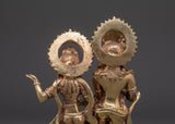 Celebrate the holy union of love and devotion with this gorgeous Radha Krishna brass sculpture, which is expertly made to symbolize the celestial lovers' lifelong link from Hindu mythology. This compact yet sturdy piece, measuring 14 cm in height and 9 cm in breadth, is ideal for both sacred settings and elegant décor. The sculpture depicts Lord Krishna gently playing his flute alongside Radha, representing perfect harmony, heavenly connection, and spiritual union. Its weight of 10.39 kg indicates its dense, sturdy construction, bringing lasting elegance and spiritual energy to your area.