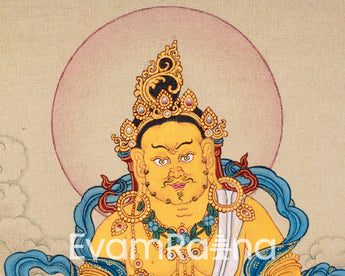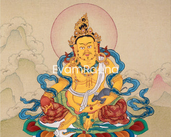 Invite the blessings of wealth and abundance into your life with this exquisite Dzambhala Thangka, crafted with premium quality and perfect for smaller spaces. Dzambhala, the deity of wealth and prosperity, is depicted here in all his splendor, radiating abundance and blessings.
