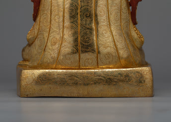 Introducing the Rangjung Rigpe Dorje, the 16th Karmapa Statue, an excellence that represents the enlightened leadership and profound spiritual legacy of one of Tibetan Buddhism's most cherished outstanding individuals. This 8.7-inch statue is crafted of high-quality copper and embellished with a brilliant layer of 24K gold gilding. The elaborate gold and acrylic paintings depict the Karmapa's dignified posture and meditative countenance, with each brushstroke conveying his great devotion to spiritual teachings and humanitarian beliefs.