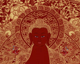 23x30” Red Amida Buddha | Buddha of Boundless Compassion | Gold on Red Canvas Amitabha Thangka
