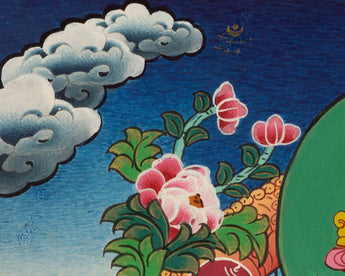 -Rotate thangkas between display and storage on a regular basis, two to four times a year, to reduce the amount of exposure to light. Keep away from sunlight and humidity.