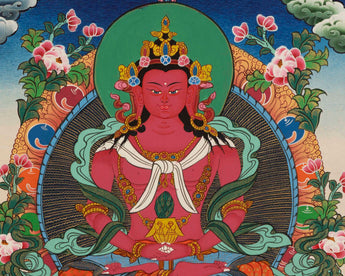 Red Amitayus Buddha Thangka | Tibetan Wall Decoration