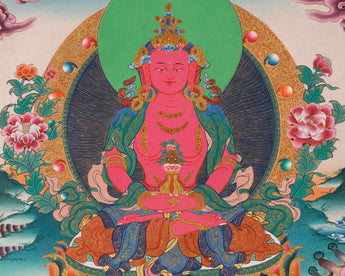 Red Amitayus Buddha Thangka | Religious Hand Painting | Wall Decors