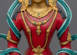 The Red Amitayus Figurine is a great representation of longevity and vitality that will elevate your spiritual practice. This statue, which was created with unmatched skill, is proof of the greatest caliber of spiritual artistry. With its height of 11 inches and weight of 2.72 kg, it emanates a sense of majesty and vigor that would inspire awe in any place of worship. Its ancient aura of heavenly longevity and vitality, enhanced with gold and acrylic paints, invites you to connect with its transformative energy. It is crafted from copper.