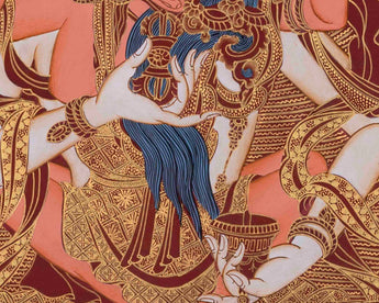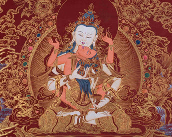 Red And Gold Vajrasattva Yab Yum Thangka | Wall Decor Painting