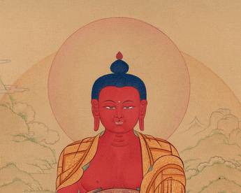 Radiant and captivating, this Red Buddha Amitabha Thangka beautifully showcases the sacred artistry of Tibetan tradition. It masterfully blends natural elements with deep spiritual meaning. Made with care on fine cotton canvas, the artwork uses natural Lhasa stone colors, ground from mineral stones, giving it vibrant hues and lasting durability. Stunning 24K gold accents are delicately applied to highlight Amitabha’s divine presence, ornaments, and aura. Created in the traditional Karma Gadri style, the thangka offers a sense of spacious clarity, intricate details, and a harmonious play of colors and light, making it a truly inspiring piece.
