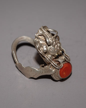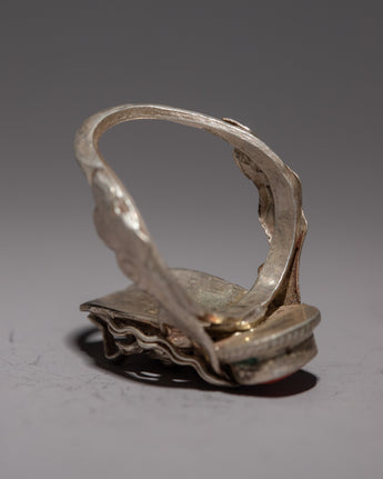 The coral stone's deep, rich red color represents passion, vitality, and vigor. This ring is an eye-catching accessory because of the striking contrast it creates when set within the sterling silver frame. You are able to wear it on any finger thanks to the adjustable design, which guarantees a comfortable fit.