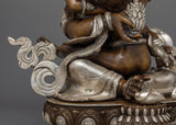 Oxidized Silver Plated Wealth and Abundance Red Dzambhala with Consort Vasudhara Statue