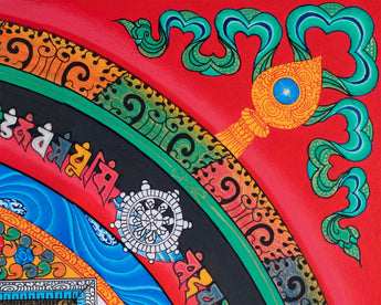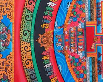 Red Kalachakra Mandala Thangka | Dragon Motif Artwork | Religious Wall Hanging Decors