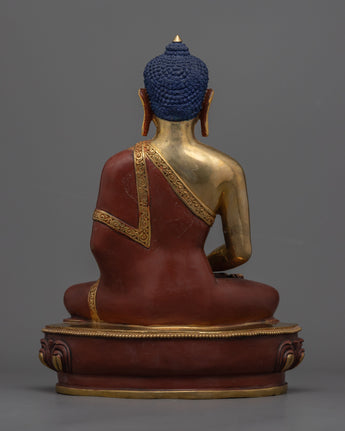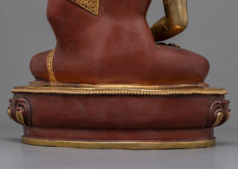 Allow the Sutra Buddha Amitabha statue to become a source of calm and spiritual introspection in the quiet corners of your house. This captivating work of art is more than just decoration; it's a spiritual journey weaved with complex features and reflecting surfaces. From its oxidized copper body to its golden embellishments, every detail of this statue tells a story of beauty and history, lovingly created to bring a piece of Buddhist legacy into your home.