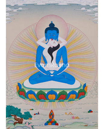 Experience the powerful presence of the Adi-Buddha. Refined Samantabhadra Thangka adorned with intricate details and vibrant colors, this Spiritual Artwork brings the Primordial Buddha into your space. Immerse yourself in its spiritual energy and awaken your inner wisdom.