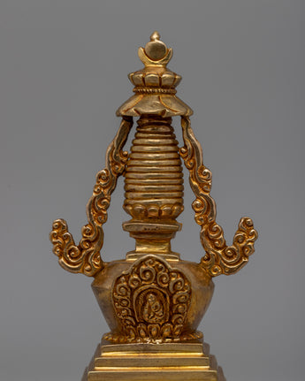 Religious Décor Gold-Plated Stupa | Sacred Altar Piece with Floral Patterns