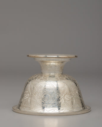 Each bowl, crafted from pure silver, showcases careful Himalayan craftsmanship and has an inner depth of 4cm, assuring usefulness alongside its spiritual purpose. Their delicate design makes them ideal not just for rituals, but also for significant decor in meditation places or spiritual corners of your home. With a total weight of 0.748kg (0.106kg each bowl), these bowls are strong, lightweight, and simple to clean.