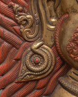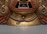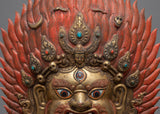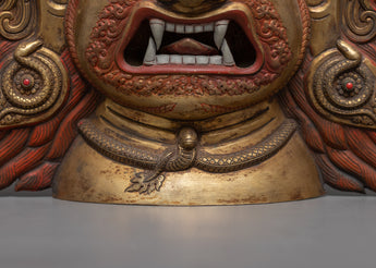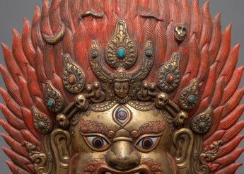 Using the repoussé technique, artisans achieve extraordinary depth and texture, bringing the deity's terrifying features to life against the gleaming backdrop of gold-plated copper. This technique not only captures Bhairava's intimidating presence but also adds a tactile dimension to the mask, creating a captivating work of art.