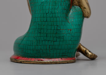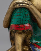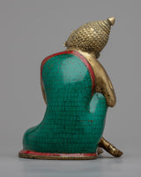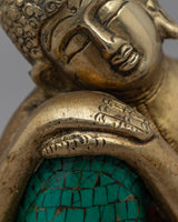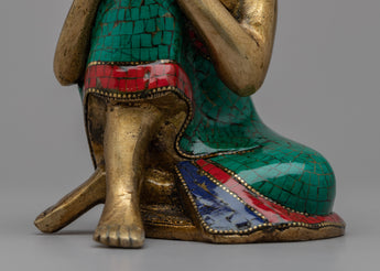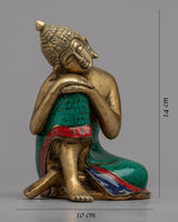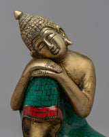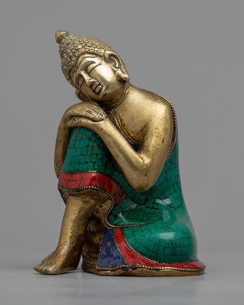 The Resting Buddha Statue is a magnificent handcrafted brass work of art. With two hands, the deity is shown resting his head on the knee. The monastic robe is embellished with beautifully embellished gemstones, which enhance the statue's beauty and elegance. The craftsmanship is superb, and every detail has been meticulously carved to perfection. This statue is ideal for meditation and introspection, and it will complement any collection or environment.