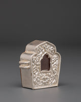 The Silver Ritual Ghau Box is more than just an elegant decorative item; it is a deeply meaningful spiritual artifact designed to safeguard your most treasured mantras, gemstones, or small religious objects. Crafted with care, this box enhances the spiritual qualities of its contents, making it an ideal companion for meditation and personal reflection. Its calming presence serves as a daily reminder of the sacred energy it holds, offering protection and peace wherever it is placed. Incorporate this beautiful Ghau box into your spiritual practice to deepen your connection to inner tranquility and elevate your mindful rituals.