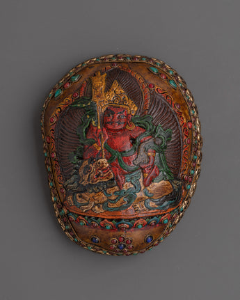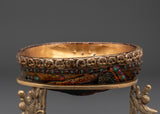 Traditionally used as a ceremonial offering bowl, it is filled with sacred substances such as wine, water, or grains during tantric rites to invoke blessings from powerful deities like Vajrayogini and Mahakala. The durable combination of metals and resin ensures longevity, allowing it to serve both as a functional ritual tool and a cherished decorative piece for an altar. Perfect for monks, tantric practitioners, spiritual healers, and collectors, the Ritual Kapala Cup embodies the profound Buddhist teachings of impermanence and transformation, inviting deeper connection and spiritual growth in every ceremony.