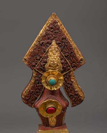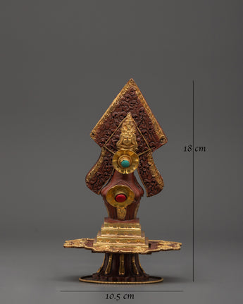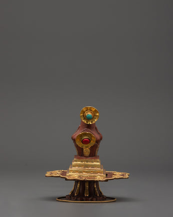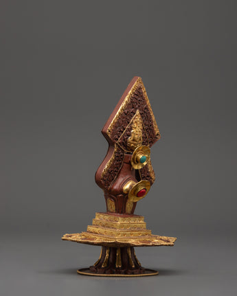 Traditional Ritual Offerings Torma is precisely created to enhance your meditation space. This artwork is intended for those who value tradition and spiritual authenticity, making it an essential complement to any ritual altar. The Torma, constructed of sturdy copper and richly gold-plated, represents offerings during rituals and ceremonies, encouraging a stronger connection to your practice.