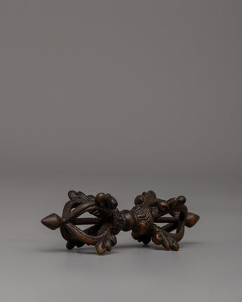 Ritual Tool Oxidized Copper Vajra, also known as a Dorje in Tibetan Buddhism, represents the invincible strength of enlightenment. This handcrafted oxidized copper Vajra is a sacred ritual instrument used in spiritual activities to eliminate negativity, balance energy, and invoke divine perspective. Its exquisite double-ended transformation represents the merging of compassion and wisdom, making it a practical addition to any meditation or ritual setting.