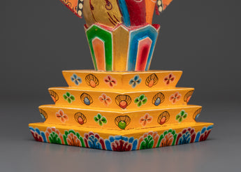 Crafted from wood and painted with vivid acrylic colors, this 26cm tall Torma is both a spiritual object and a vibrant piece of Buddhist art. Each piece is carefully shaped to resemble traditional butter sculptures, embodying centuries of ritual precision. Perfect for practitioners, monks, or spiritual collectors, this Torma enhances devotion, focus, and intention in every ritual.