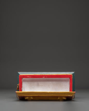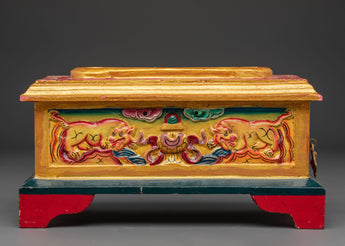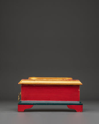 This Ritual Wooden Incense Burner, a handcrafted piece of Tibetan creativity that combines cultural symbolism with spiritual design, will elevate your meditation and prayer practices. This incense holder, 12.5cm in height and 24cm in width, is made of wood and hand-painted with acrylic colors, making each one unique. With a balanced weight of 0.66kg, it is the ideal centerpiece for shrines, meditation rooms, or spiritual meetings.