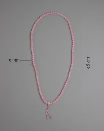 Experience the soft charm and tender energy of our Rose Quartz Mala Beads, each embellished with small 5mm beads. These beads are a source of kindness and heartfelt connection—they are more than just jewelry.