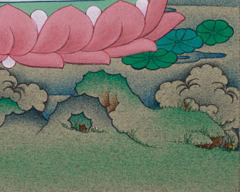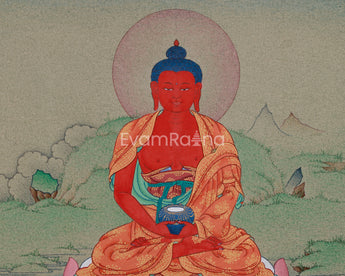 The Ruby Red Amitabha Buddha Thangka depicts the Buddha of Infinite Light and Compassion, symbolizing wisdom, infinite love, and spiritual enlightenment. Hand-painted on cotton canvas, it features vivid natural stone colors and authentic 24K gold. The natural stone hues, sourced from the sacred Tibetan plateau, offer deep, vibrant colors that bring Amitabha's divine form to life, while the 24K gold accents highlight sacred details, such as his robe and alms bowl. Made in the traditional Karma Gadri style, this thangka seamlessly blends exquisite iconography with spiritual grace.